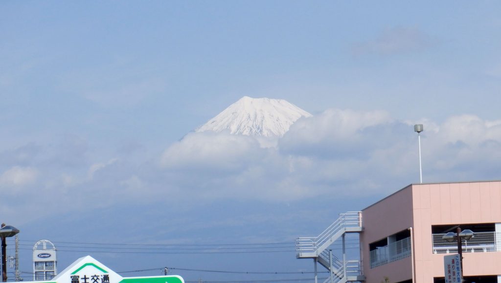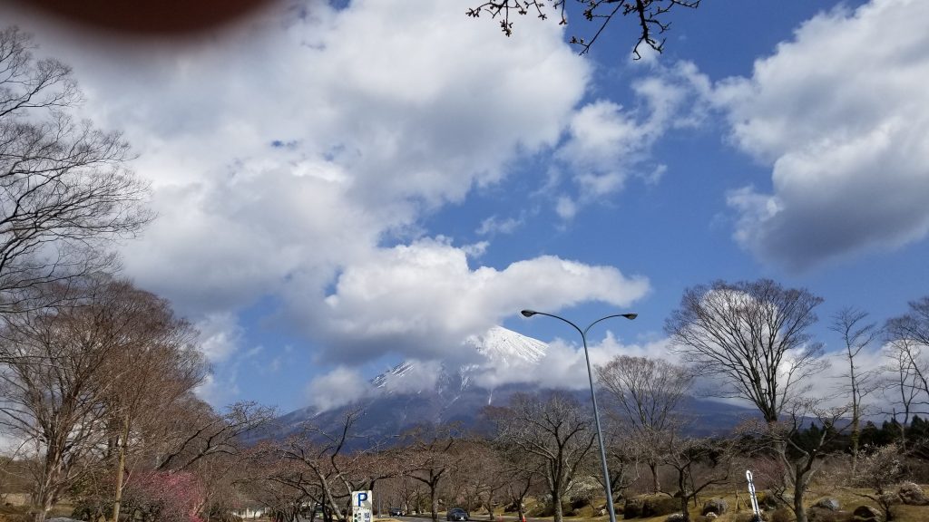 桜は三分咲き、富士山は出たり引っ込んだり
