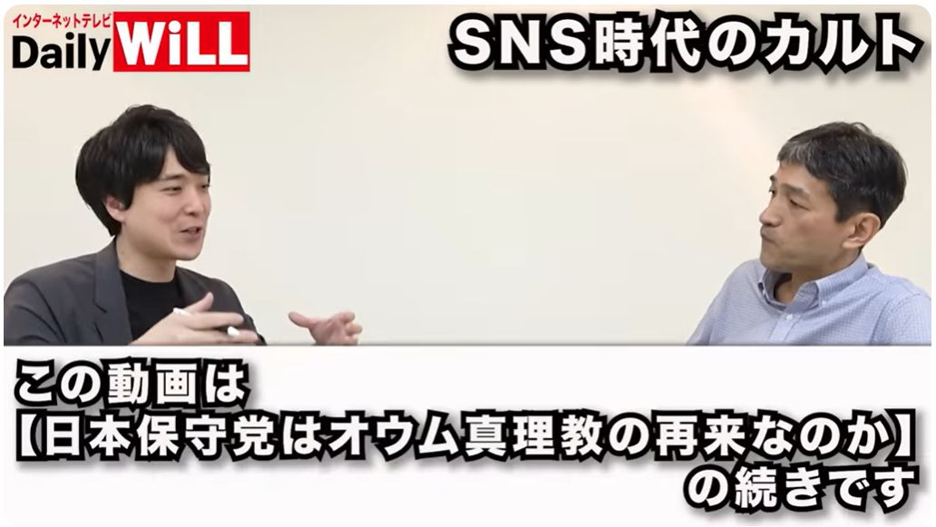 でかい態度に反比例して、話が実につまらない。出演させる側にすれば、上祐史浩に「日本保守党はカルトだ、オウムだ」って言わせたかったのだろう。しかし上祐は完全に宣伝してる。自分は脱会したけれど、アレフは次男を教祖に仕立て上げてようと云々とか。