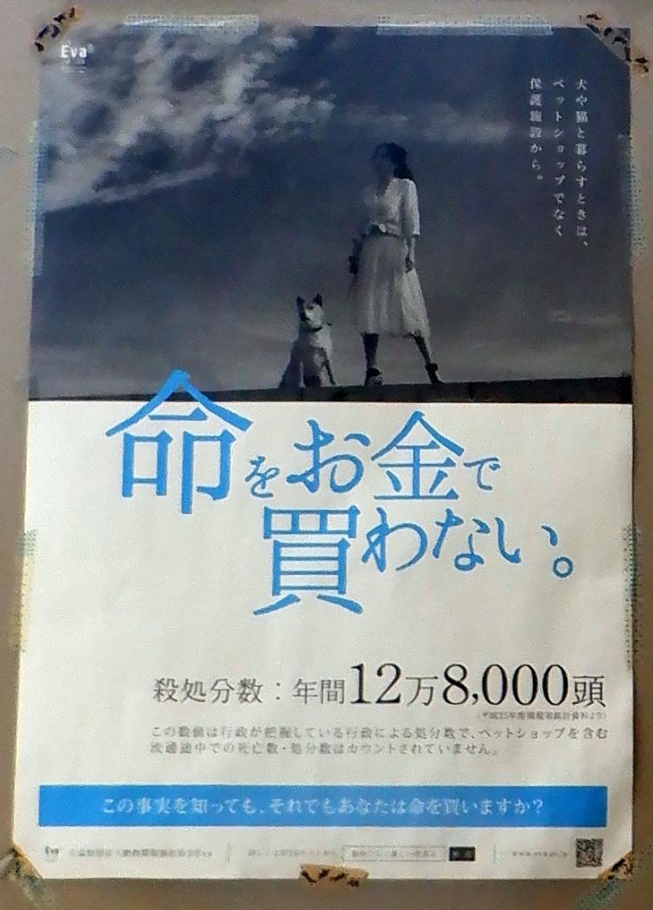 ポストにビラが溜まってるような雑居ビルの3Fにあります。店の外の壁に「命をお金で買わない」「年間殺処分数12万8千件」など、メッセージ性の強いビラが貼られてます。