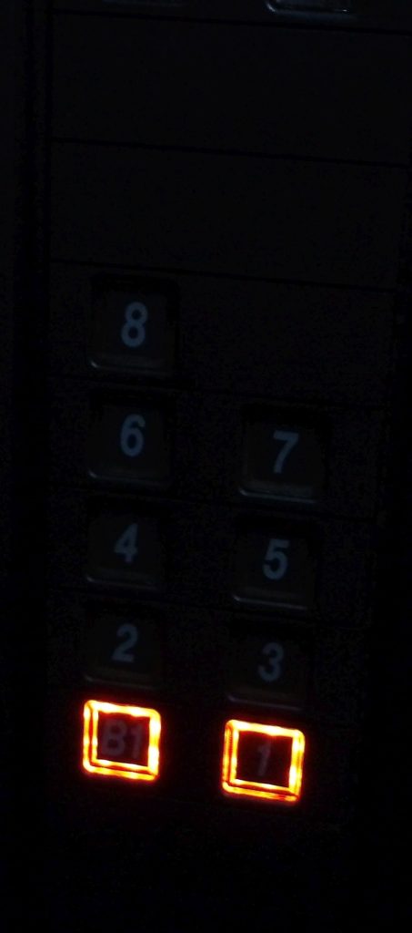 2Fだけどエレベータで行こう。そう思ってドアを閉めたら、真っ暗で「◯F」のボタンが見えない。こんな経験は初めてだった。仕方がないので片っ端からボタンを押したけど、何故か2Fは押されてなかった。
