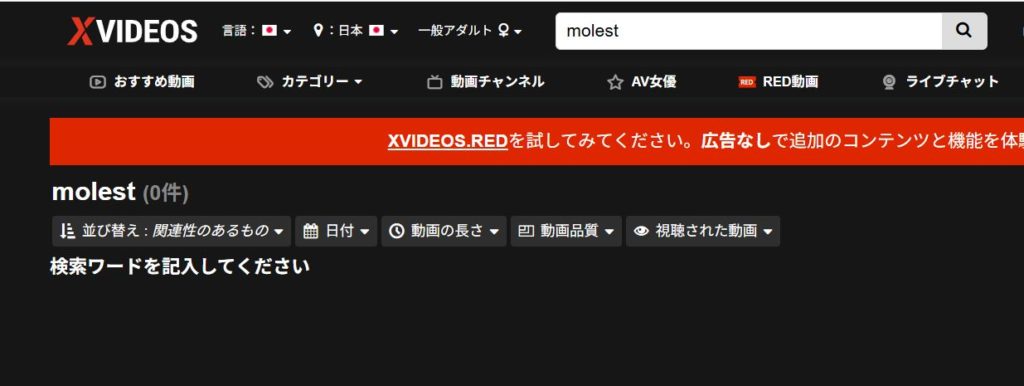 「そりゃ日本語だからだろう」って思うでしょ? ところが「molest」でも検索結果が「0」なのだ。