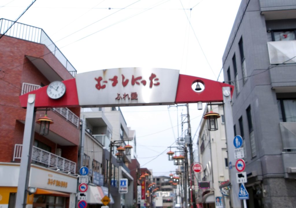 商店街のアーケードに「むさしにった発展門」。桜井誠さんが…(自主規制)。一方、逆側のアーケードには「ふれ愛」と夏目亜季みたいな表記。そう思えば「オタク議員・おぎの稔」というキャラを知ったのも夏目亜季経由だ。