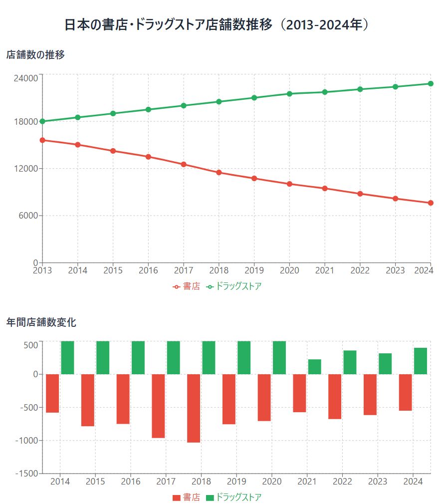 本屋さんとドラッグストアの推移(claudeさん)https://claude.ai/public/artifacts/d3cff43a-4335-4213-b300-883893ea4aa1