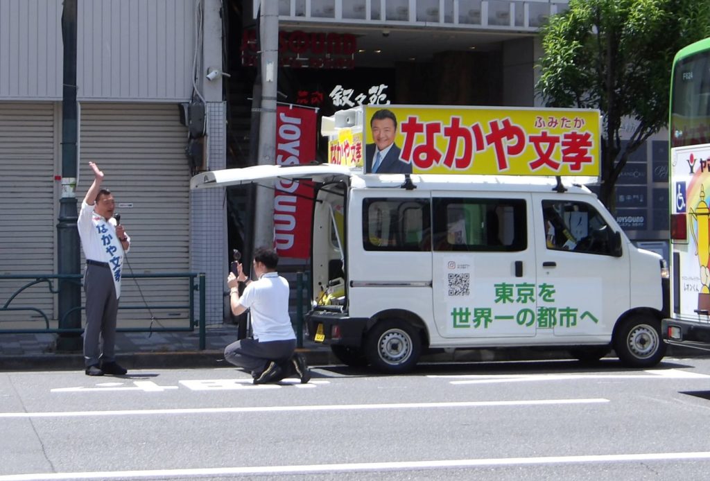 しかし開演45分前なのに誰もいない。暇つぶしに御徒町を探索すると、都議選の自民党候補が演説をしている。露骨に「私と共産党とで最後の一議席を争っている」と投票依頼。それじゃあ応援しなきゃ。頑張れよ!