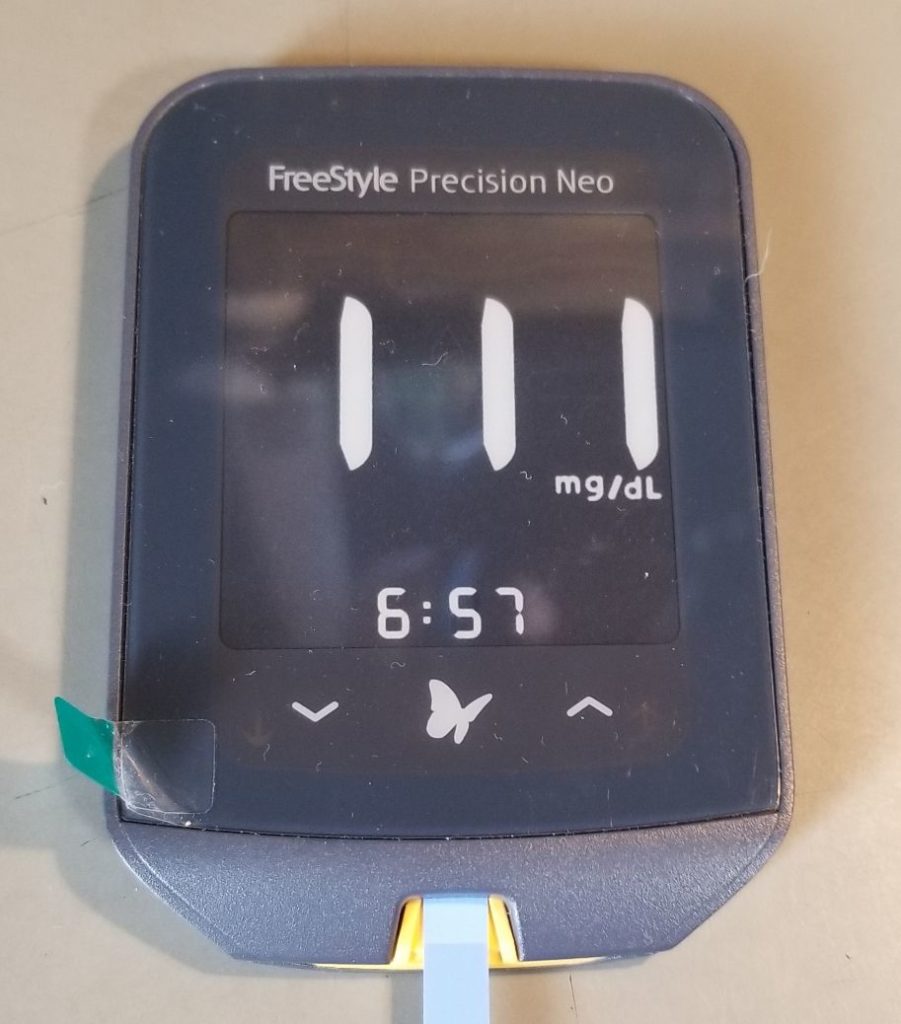 インスリンは毎朝5単位。朝の空腹時血糖値で100強。二桁はまれで、三桁のほうが多いですね。