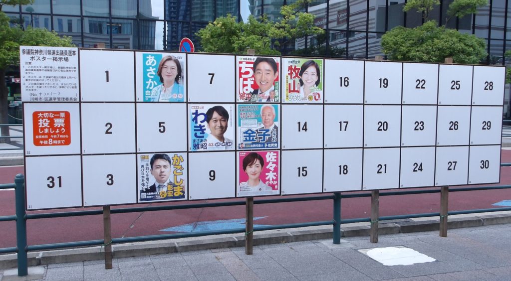 朝9時過ぎ、街を歩いていると選挙掲示板を発見。おお、さすが公明党、さすが創価学会。パワーダウンが各所で指摘されてるけれど、他党に比べればどうしれて立派なものだ。