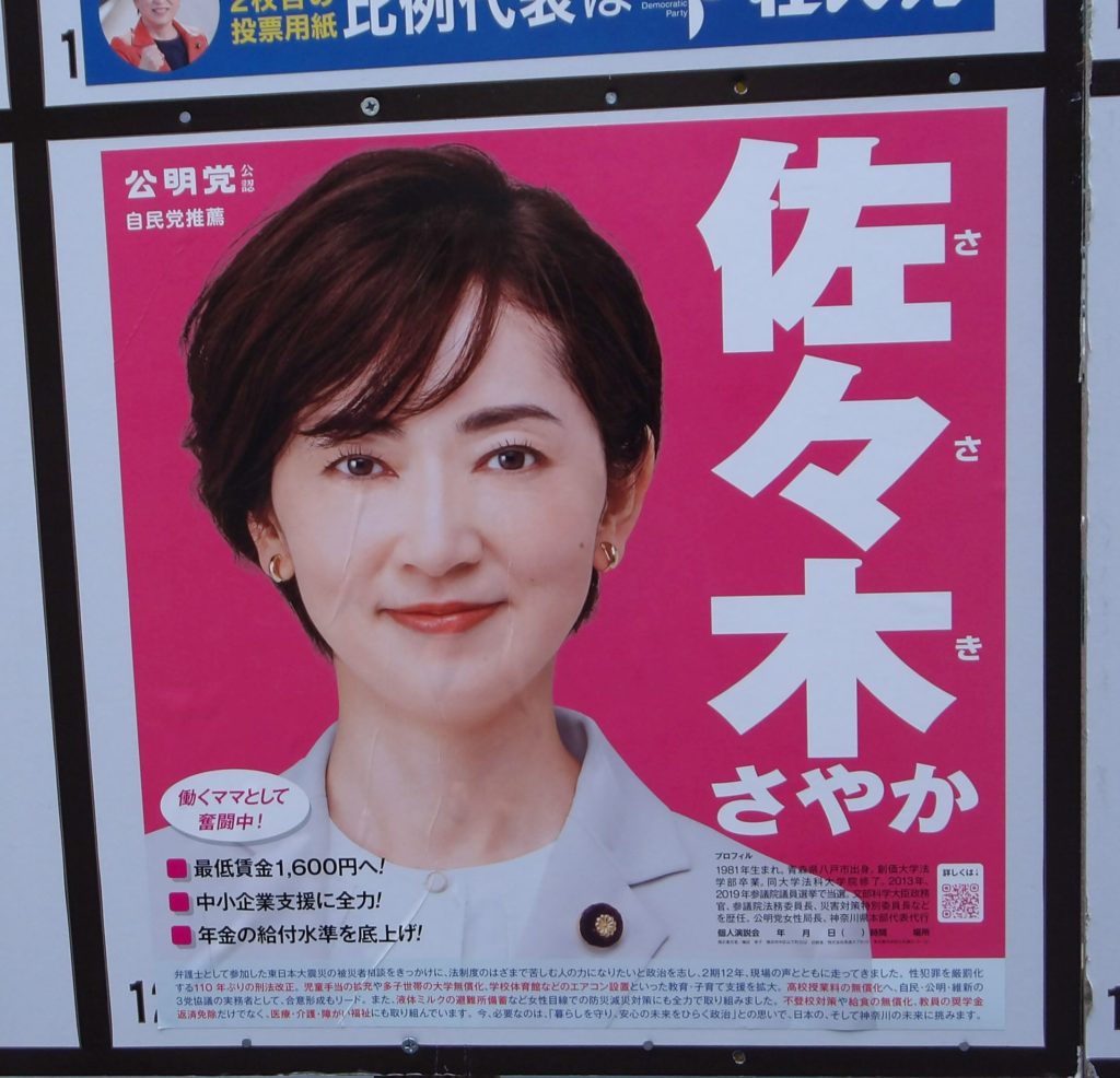 彼女の「デビュー」は強烈だった。美人を活かして、選挙前から顔アップのポスターをベタベタ貼って度肝を抜いた。2期目は「さやスタグラム」と銘打ってツーショット戦術。既に結婚していたが、とことん美人を活かしたアイドル戦法に徹した。