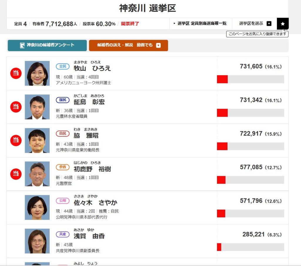 選挙区で私が投票した公明党のさーや様、参政党のやー様にマジの僅差で負けてしまいました。
