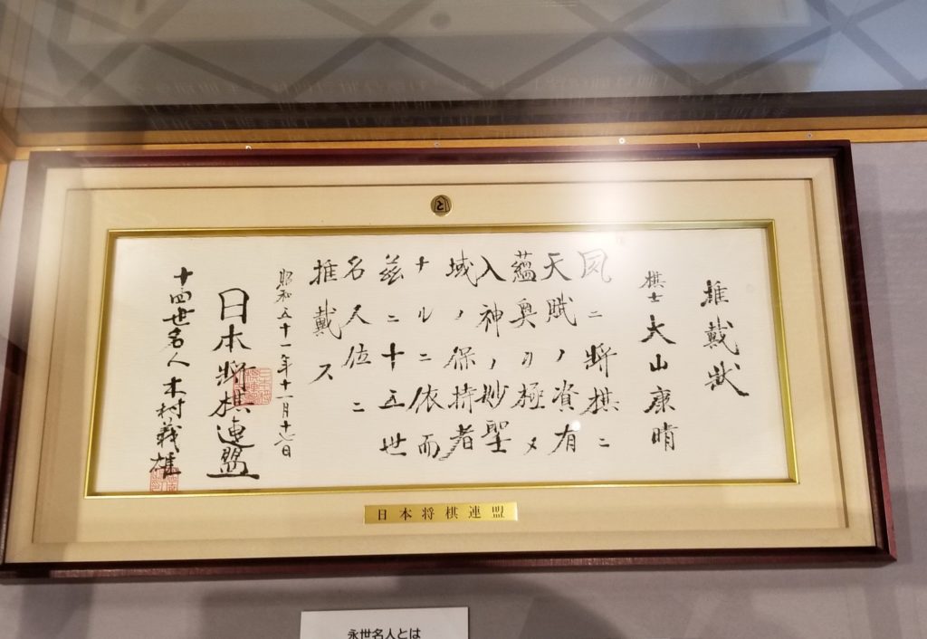 大山十五世名人推戴状。木村義雄名義なんですね。