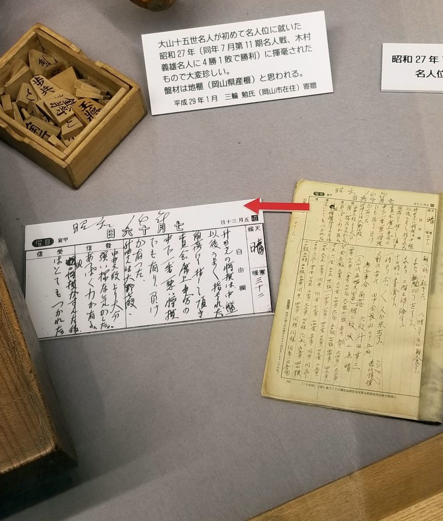 他にも第一期王位の贈位状(推戴とか贈位とか呼称が難しい)など、大山ファン固唾のグッズがてんこ盛りです。