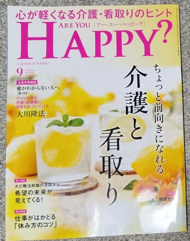 ARE YOU HAPPY? も「介護と看取り」であり、時流に便乗した企画。もっとも、幸福の科学はまだ現在のトレンドを理解し、信者さんに何を提供すれば喜んでもらえる感覚を持っているとも言える。