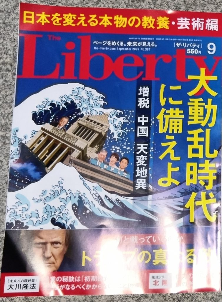 The Libertyの特集は「大動乱時代に備えよ」。HSらしいし、「増税・中国・天変地異」とちゃんと天変地異が入ってるところもカルトっぽくて良い。