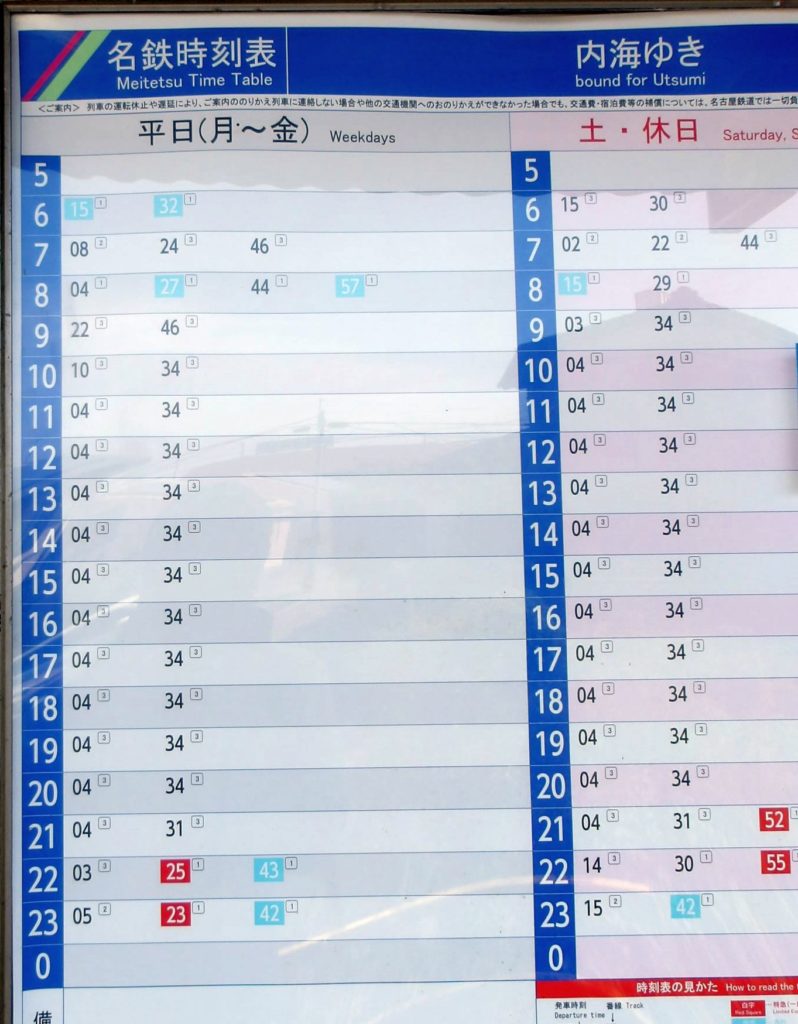 まず名鉄線に乗るのに高度な知識が必要で、河和行きの急行に乗る必要がある。行き先がかなり複雑な上に、鈍行だと駅が多すぎてかったるいのだ。