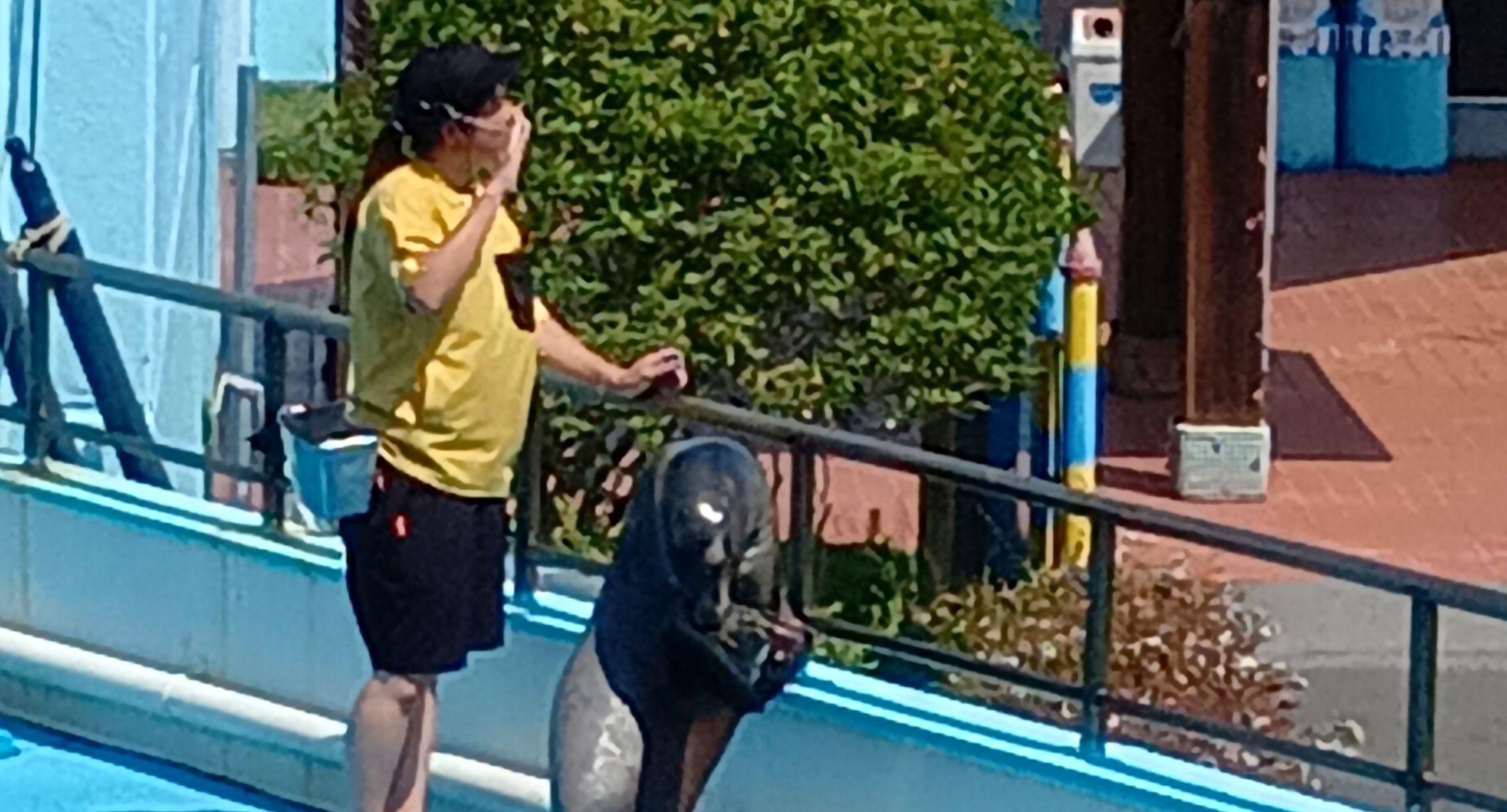 ショーを一通り終えた後に、アシカを連れて会場をぐるりと回る。記念撮影タイムなのだが、この見せ方は初めてだ。