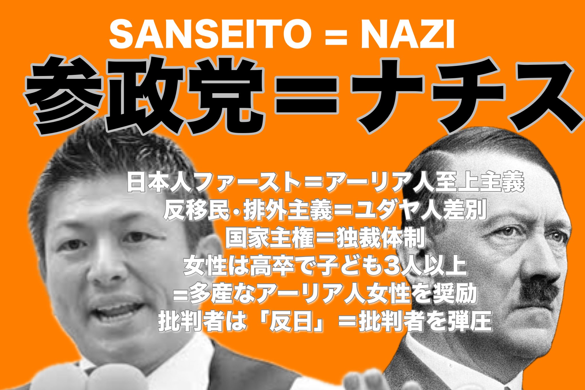 さて、参政党の最大の脅威だが、実は今まさに迫っている。もちろん昨日も今日も明日もナチナチ騒いでる自称ジャーナリスト・知識人・文化人ではない。あれは、モロに応援団で逆効果。