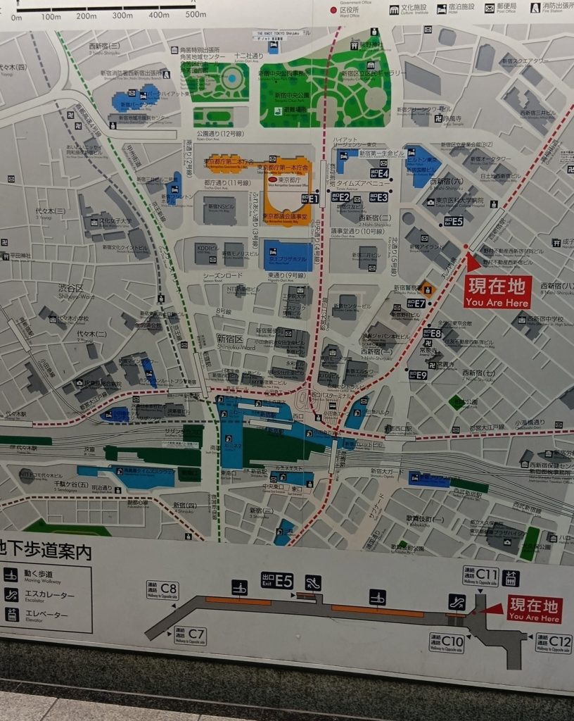 GoogleMAPによると、営団地下鉄西新宿駅のC9で降りて徒歩数分らしい。しかし、いくら西新宿駅構内を探しても「C9」が見当たらない。挫折して地上に出る。再びGoogleMAPのナビ機能。ここから5分くらいで着くという。だが、ナビが挙動不審。右向いて左向いてあっちむいてホイ。