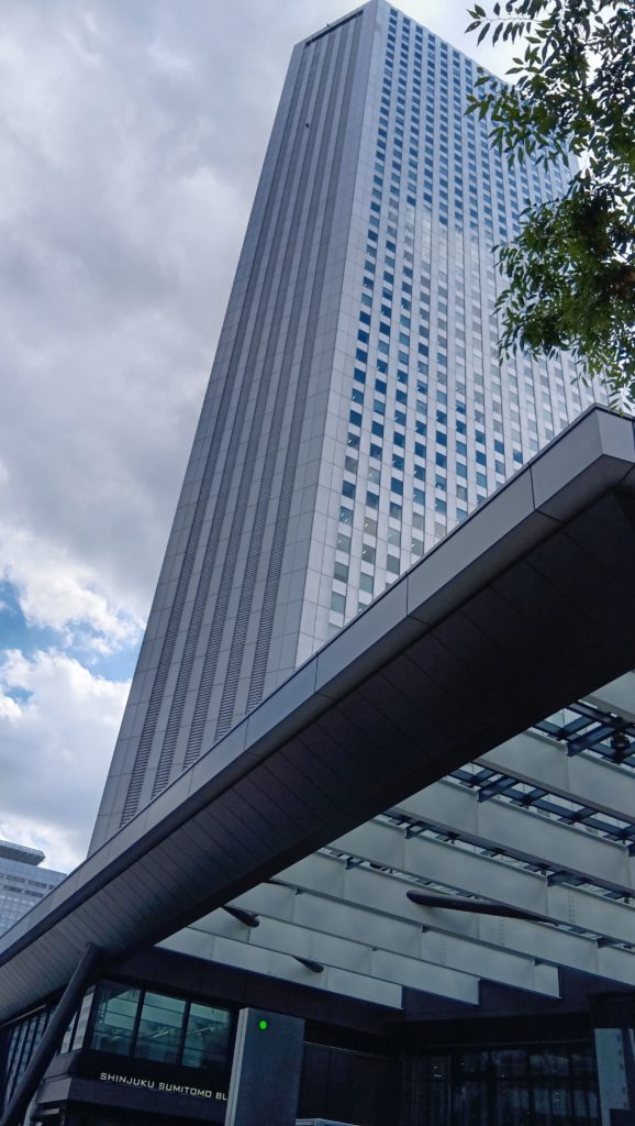 巨大な新宿住友ビルの横で「徒歩1分」になる。しかし、それらしきものはない。「あれあれ」と思って見てみたら、何のこっちゃない、朝日カルチャーセンターは新宿住友ビルの10Fだった。ここなら、普通にJR新宿から歩いていけばいいじゃん。
