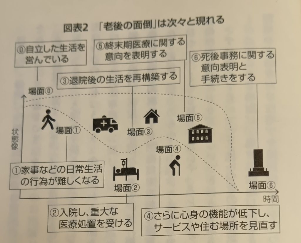 死の本質は他人の迷惑。この本はゴチック体で『自分が伝えられない状態になったとしても、大事な人人の電話番号などの必要な情報が第三者にわかるようにしておく必要がある(P.192)』と強調している。