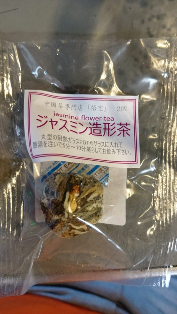 その「悟空」、喫茶店併設でない店で、美しい花を急須内に咲かせるために、造形ジャスミン茶(確か2個入り1000円)を買ってみた。