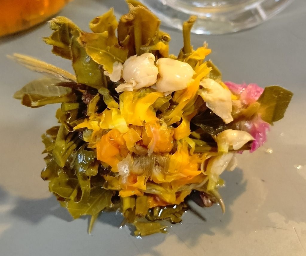 その中で特に笑えたのが、ジャスミン茶。「完成」するとこんな感じになるらしい。(写真はhttps://www.uloncha.com/moli/moli_04.htm より)