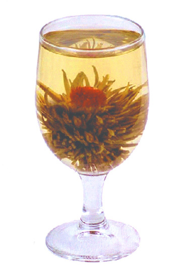 こいつがいわゆる「花茶」。透明の急須に入れて飲むのだが、急須の中に花が咲く。そんなギャグみたいなお茶だけど、ありがたがる人が多く、横浜中華街の「悟空」という店の前には、喫茶店に入りたいおばさんが列を作っている。