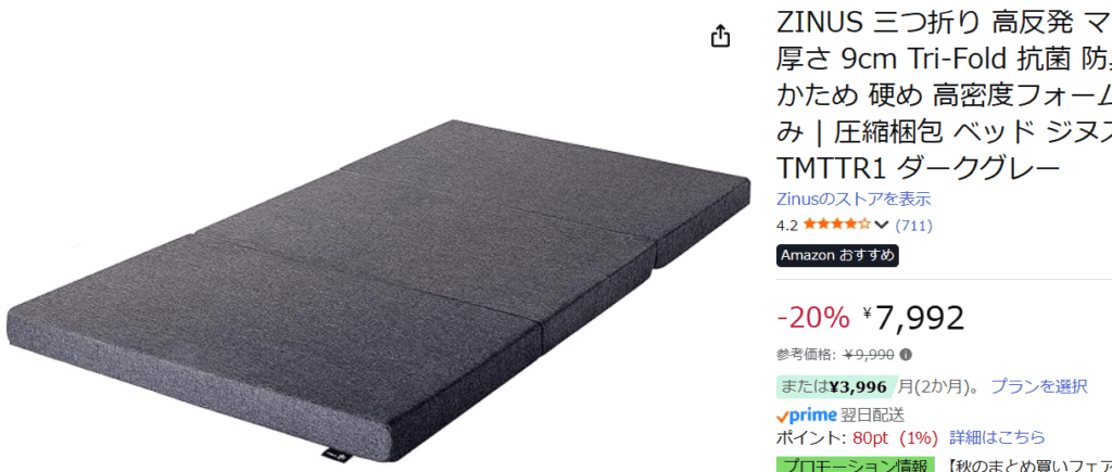 古い布団のシーツがボロボロに破け、固形うんこの円形跡がついて、更にデブ化して腰痛が少し復活したので、腰に負担をかけないために少々分厚いマット形式のを買った。