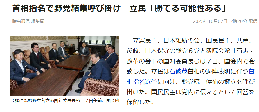 野党が野田ではなく「極右」高市早苗を選択するのでれば、民意を反映しているといえる。しかし、反高市が「連中」の旗印らしい。