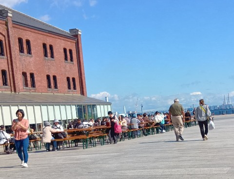 会場の横浜・赤レンガ広場に10時半ごろに到着。いつもながら、後ろの近代的オフィスや観覧車そして歴史的建造物である赤レンガに海、横浜はスゲー。いくら川崎が頑張っても敵わない。