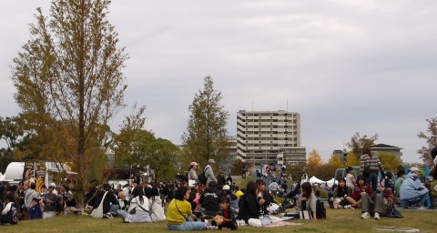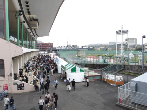 公園+球場+競輪場ですから、相当な規模です。公園ブロックが地方勢、競輪場施設が市民無料相談、競輪場グラウンドが商店街。なお、グラウンドは食い物禁止。良い子向けの企画だけです。