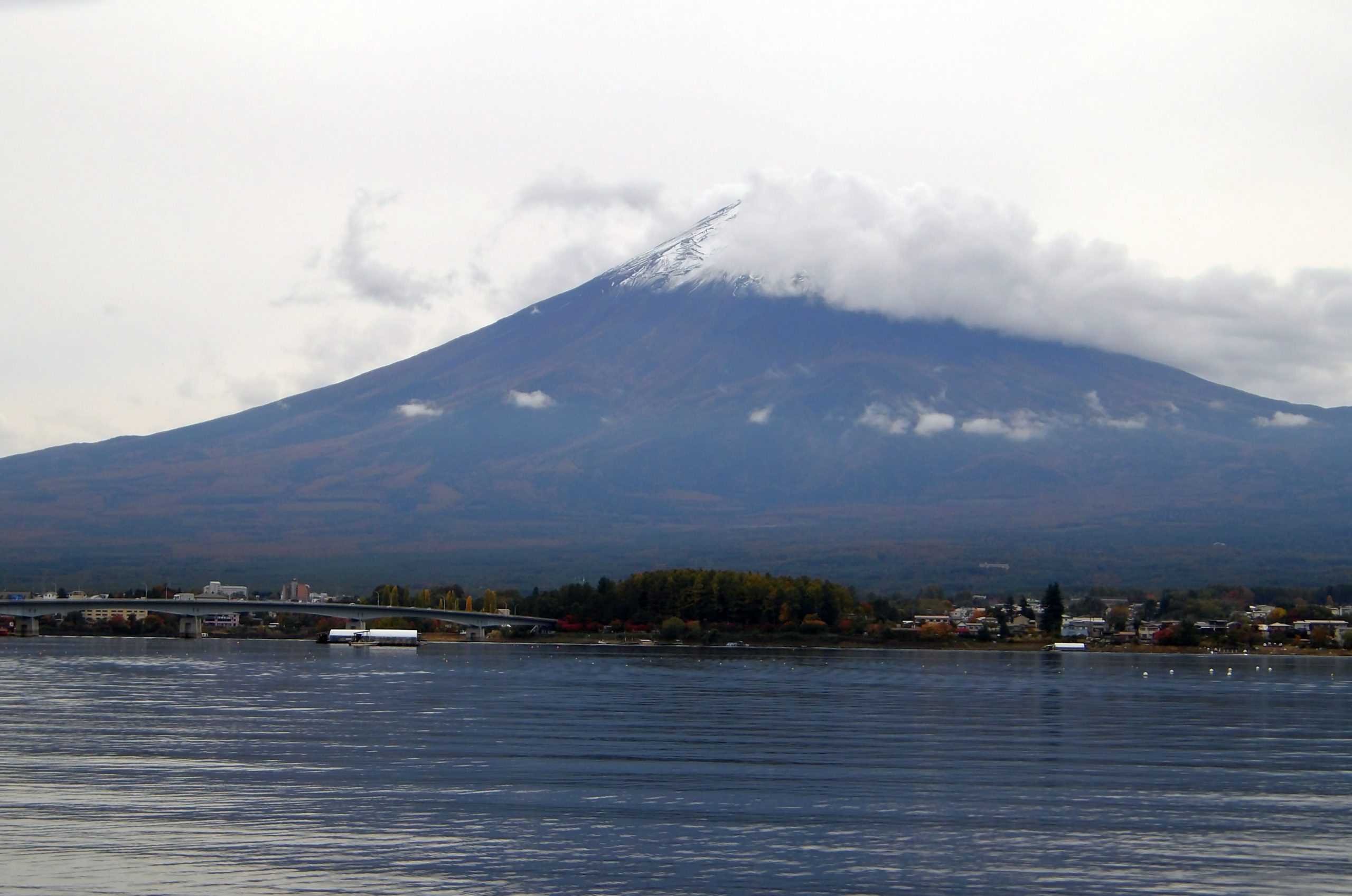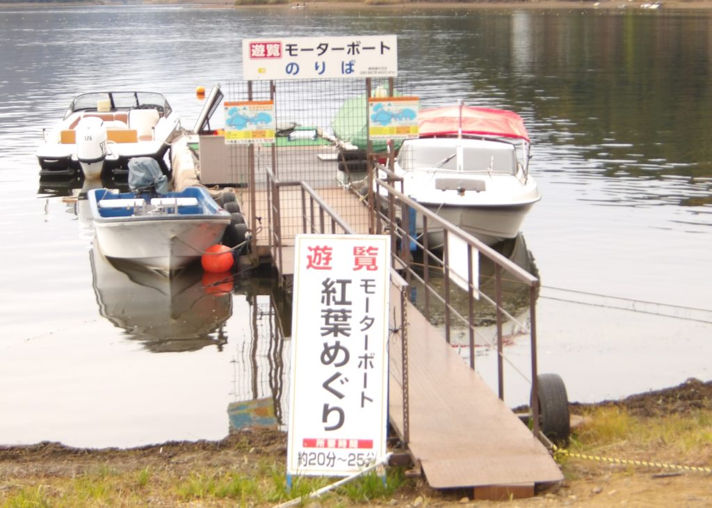 ガイジーンを見習って富士山を見に行きましょう。河口湖は紅葉回廊の逆側の道を歩きます。「モーターボートで河口湖一周」ができるようです。これは面白そう。早速言ってみましょう。