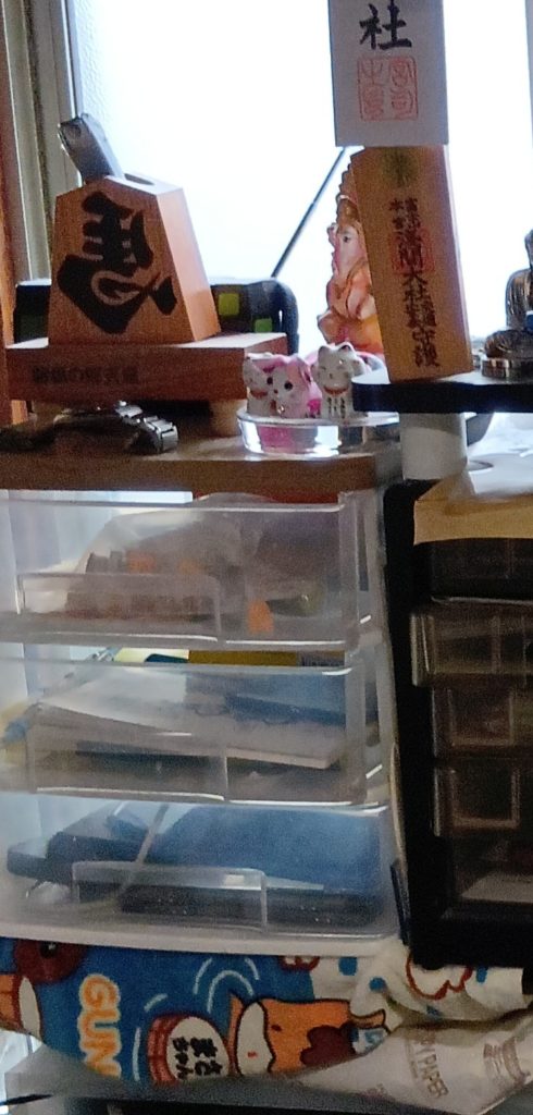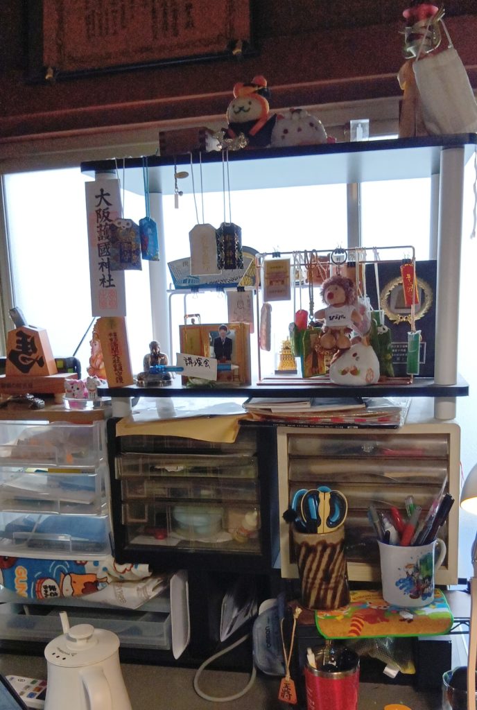 高く積み上げた「祭壇」もスクラップビルトして、ゼロベースで再配置するつもりだった。現状は、地震が来たら完全崩壊。しかし、おそらく今晩は「新机搬入祝で一人酒盛り」なので、何もできまい。土曜日に楽しみながらやろう。