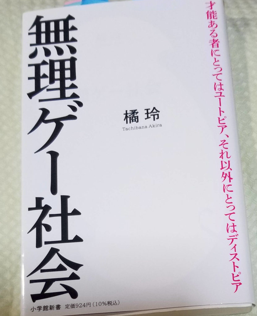 無理ゲー社会。この本は面白かった。「人間努力すれば報われるのか」という永遠のテーマを論じ、努力も才能だと切り捨てるこの本は是非ともお勧めだ。