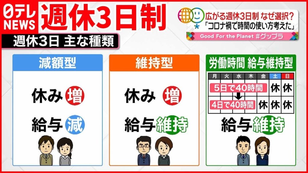 ところで、週休3日制が徐々に話題になってるのをご存知だろうか。