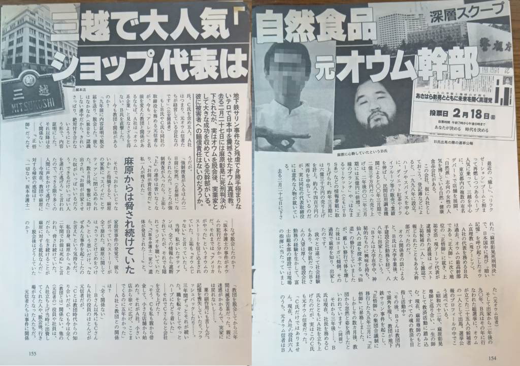 いや、町長が元オウム信者だからけしからん、許しがたいというのもあった。じゃあ公的機関は全部アウトなのか。それでは自営業で頑張ろうと思っても、三越で取引しただけでアウト!