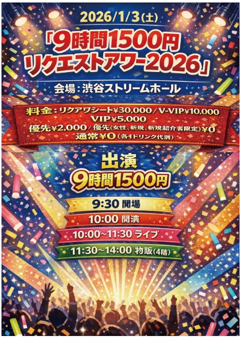 9時間1500円のコンサートは2度目(参考:「9時間1500円」は悪質アイドルなのか「前編」「後編」)。