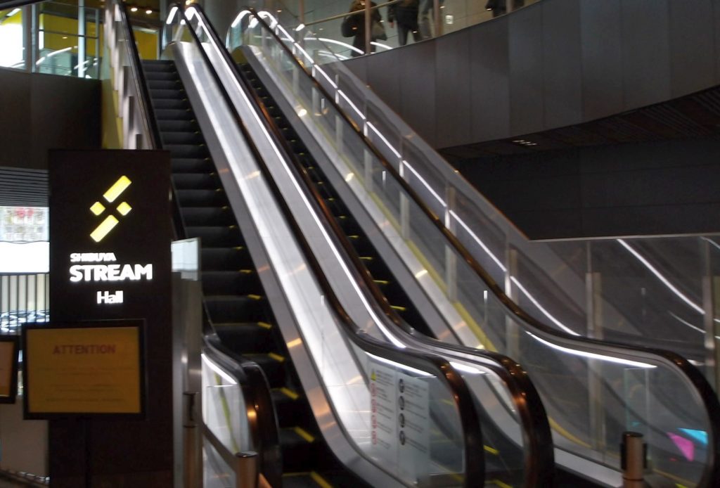 今日は、「界隈」では行き過ぎた濃厚サービスで問題視されている9時間1500円が渋谷のストリームホール(JR渋谷駅南口改札を出て左に進むと、同名のホテルが右にあるがその逆側に写真のエスカレーターがある)という場所でコンサートを開催する。