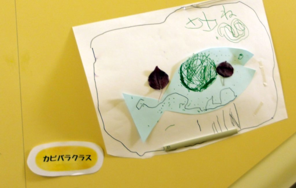 会場は2Fなので階段で登ると、「カピバラクラス」の良い子が書いた作品が何枚か貼ってあった。