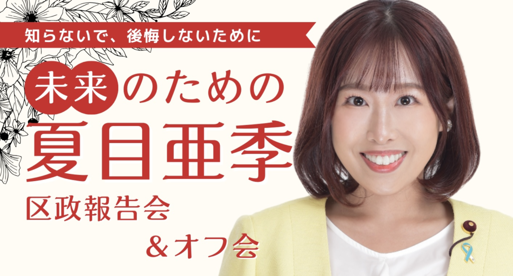 昨日は、自民党の夏目亜季荒川区議の区政報告会に行ってきた。勿論、元N国で元アイドルのあの人です。ええ、元N国、元N国元N国の夏目亜季さんの区政報告会です。