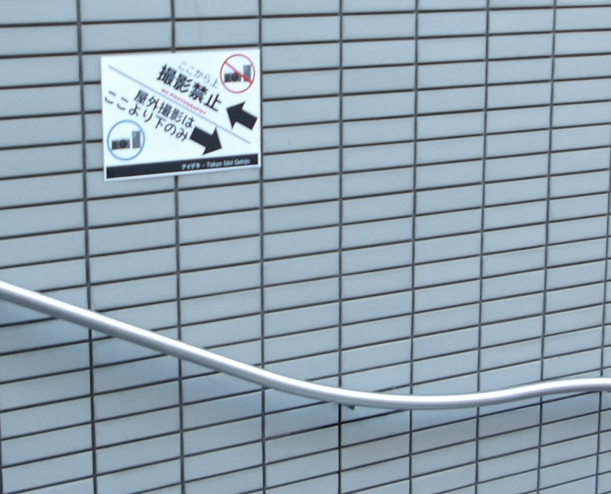 階段の途中に「階段のここから上でアイドルを撮影するな」旨のの張り紙張り紙を発見。