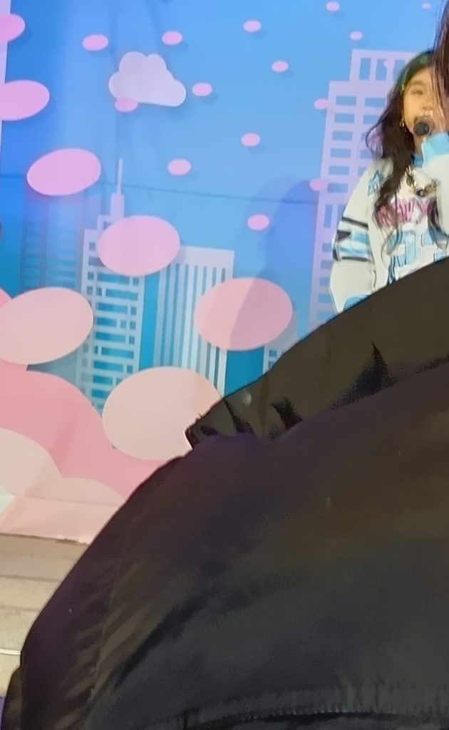 なるほど、そういうことか、前の人が巨体なので、全く撮影ができないのだ。ここでもステージは見れなくないのだけど、アイゲキの観客にとっては撮影が命。ああ、今日もまた一つ新たなスキルを身につけた。世の中、学ぶことが多すぎる。