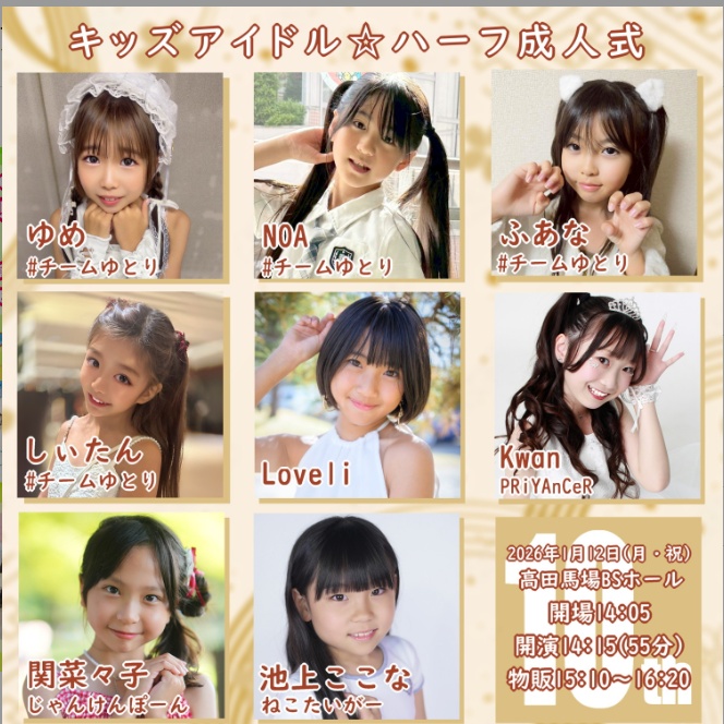 もっとも、成人式は成人式でも、10歳の幼女おっとっとアイドルの卵たちの「ハーフ成人式」である。「よくぞ”ハーフ成人式”なんて思いついたな」と思ったが、世間様でも「ハーフ成人式」は存在しているようだ。
