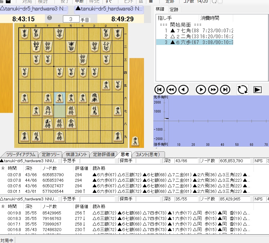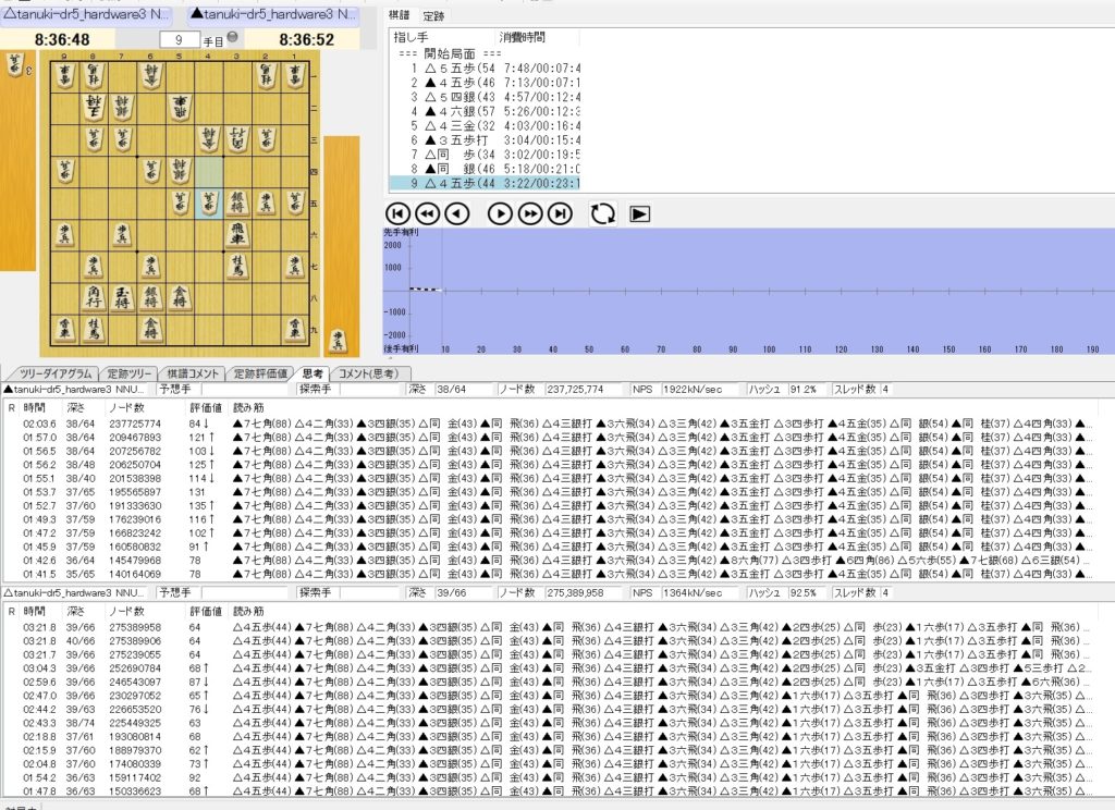 さて、加藤一二三ご自慢の▲5五歩を、突撃名人ではなくAIポンタマン(Core7の13世代)で、例によって持ち時間9時間で検証してみました。
