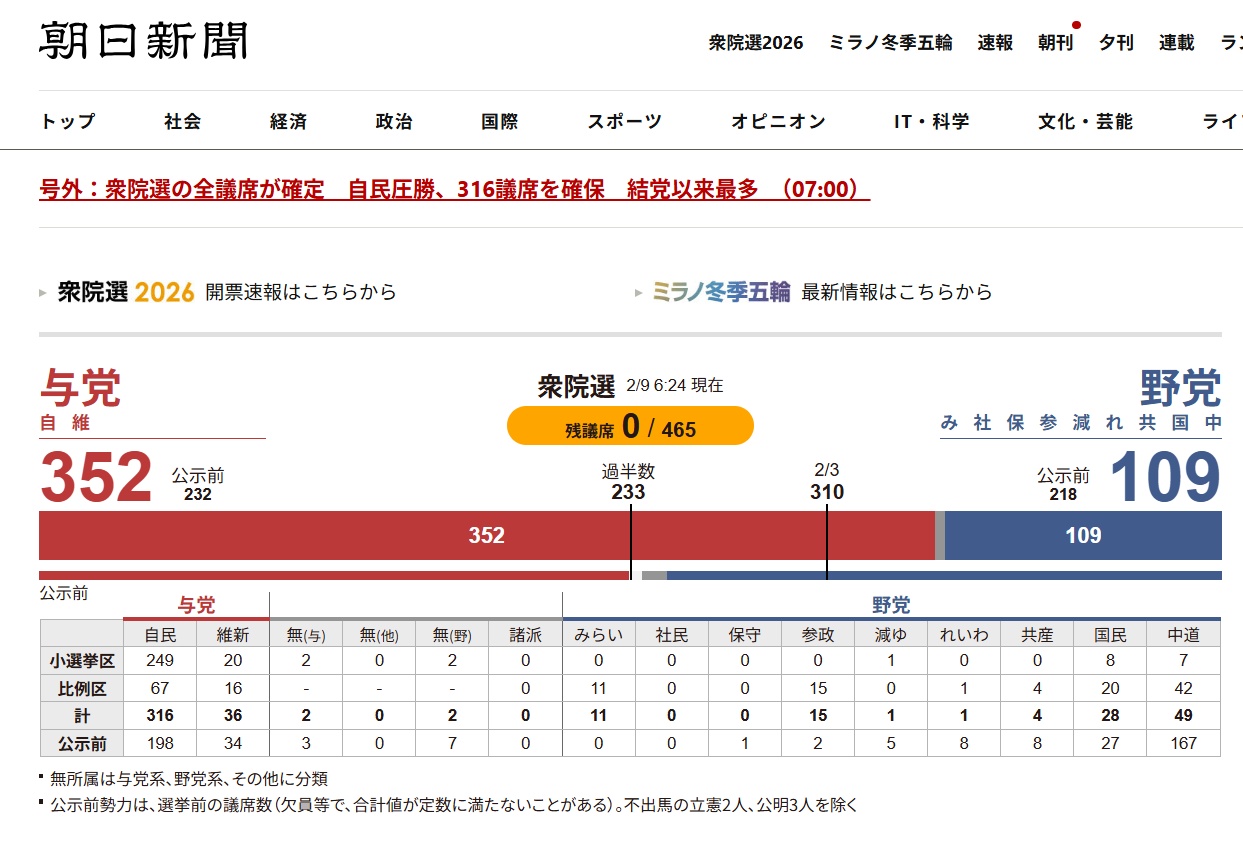 午前6時。比例東京ブロックの残り1議席も決まり、当落は全て決定した。