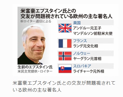 機密漏えいや贈答品… 米エプスタイン氏の疑惑、欧州著名人に飛び火/毎日新聞2026/2/13 (写真も)