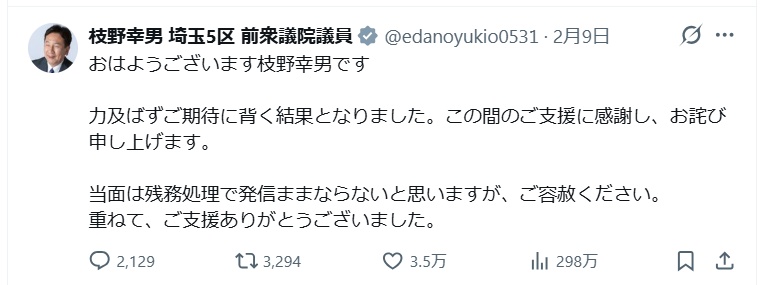 もっとも自分の知ってる範囲では、枝野・安住など大物を失った立憲系の議員は「自分が至らなかった」と反省している。「選挙制度が悪い」「有権者が馬鹿だから人気投票感覚で高市自民党に投票した」「ネット上のフェイクニュースが」なんて醜い言い訳はしていない。