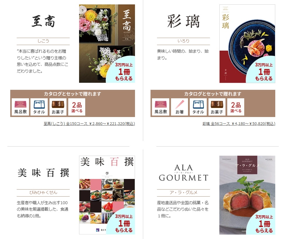 葬式だって結婚式だってカタログギフト。よって当選祝いもカタログギフトとなる。