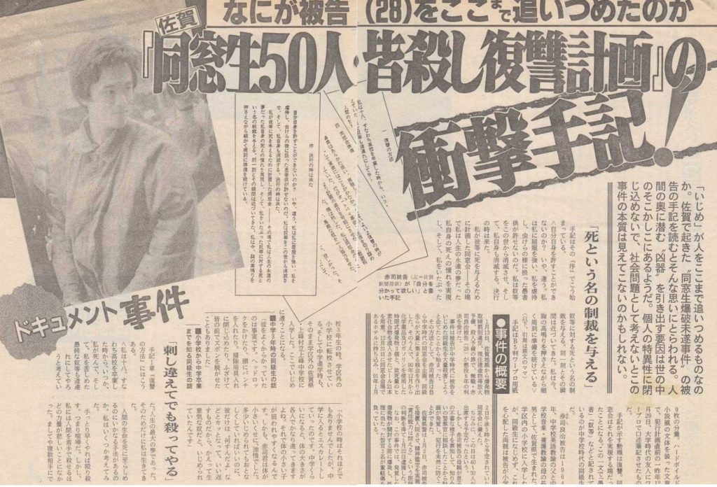 この事件の被害者からすれば、校長も教師も論外だろう。しかし何よりも許しがたいのは実行犯の生徒達。皆◯しが不可能であっても「同じ苦しみを味わえ」「失意の中で発狂死しろ」としか思っておるまい。