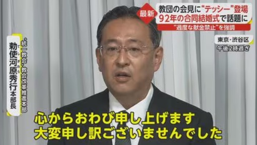 最初の最初、献金問題でテレビで大々的に報道した時。テッシーが出てきちゃいました。桜田淳子が無理でも、2世のかわいい子かイケメンの韓国人を出すべきです。