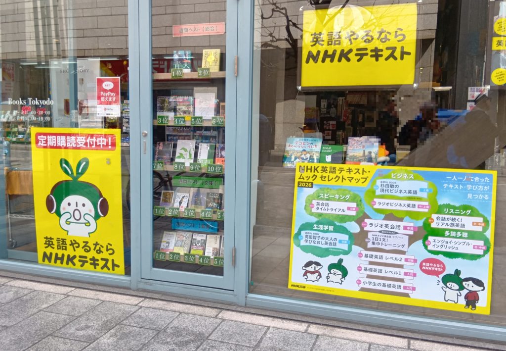 東京堂書店。ショーウィンドウにNHK英会話。AMラジオそのものがなくなるのに、凄い感覚だ。