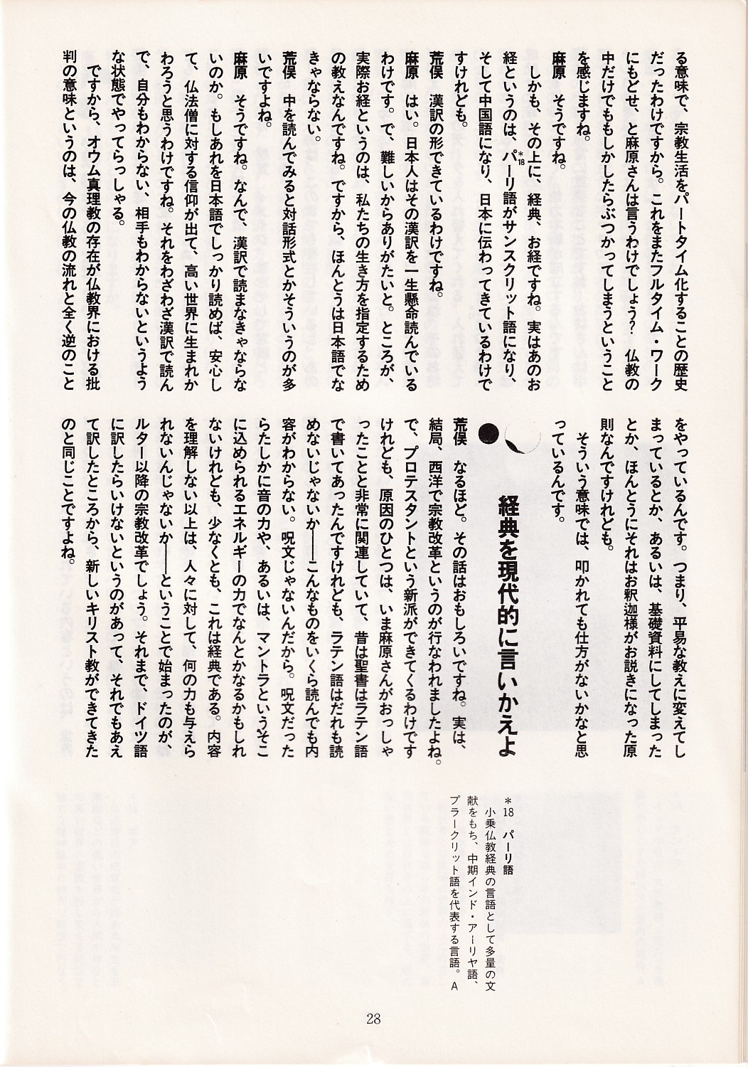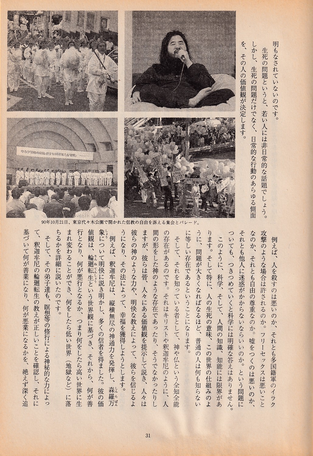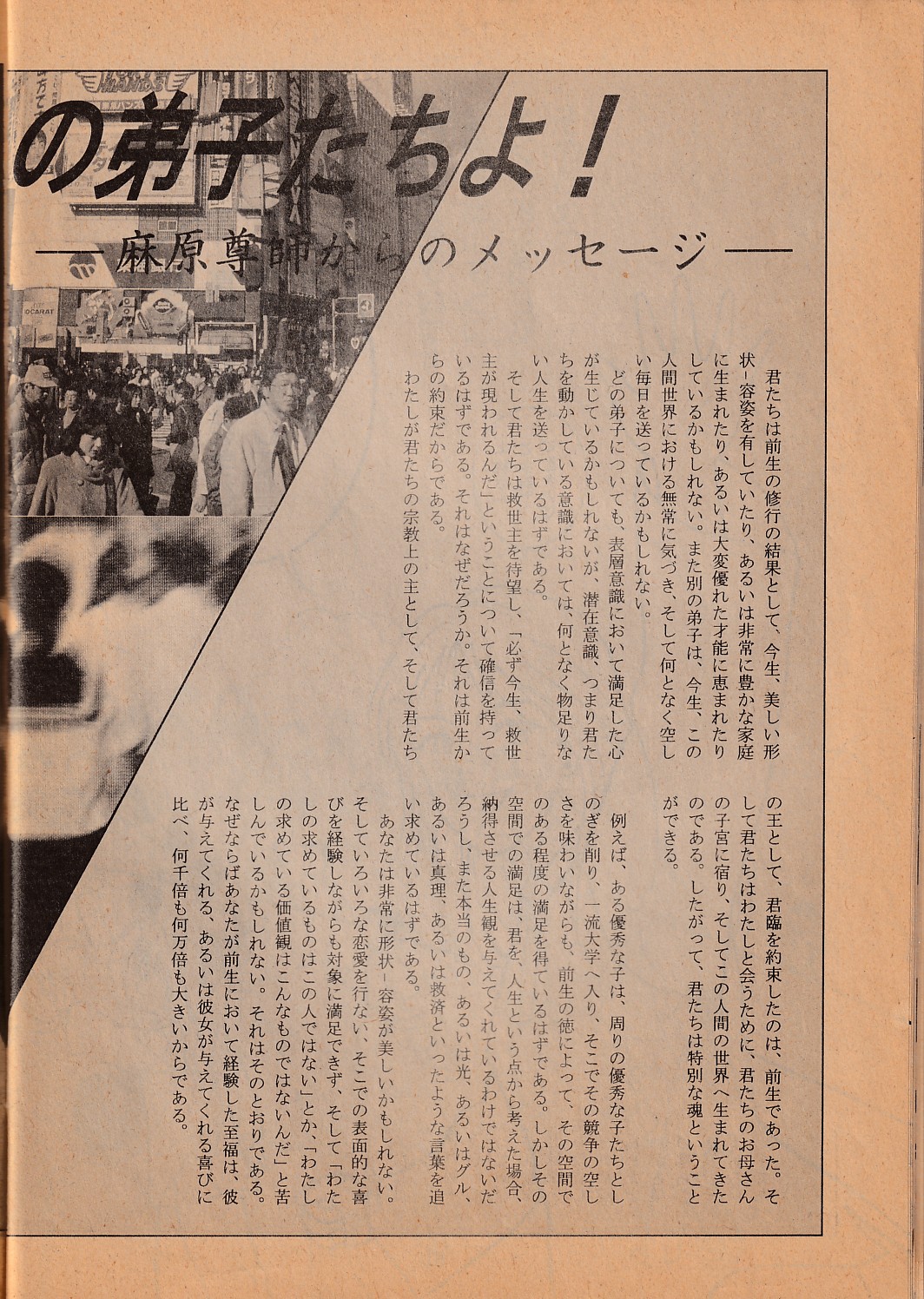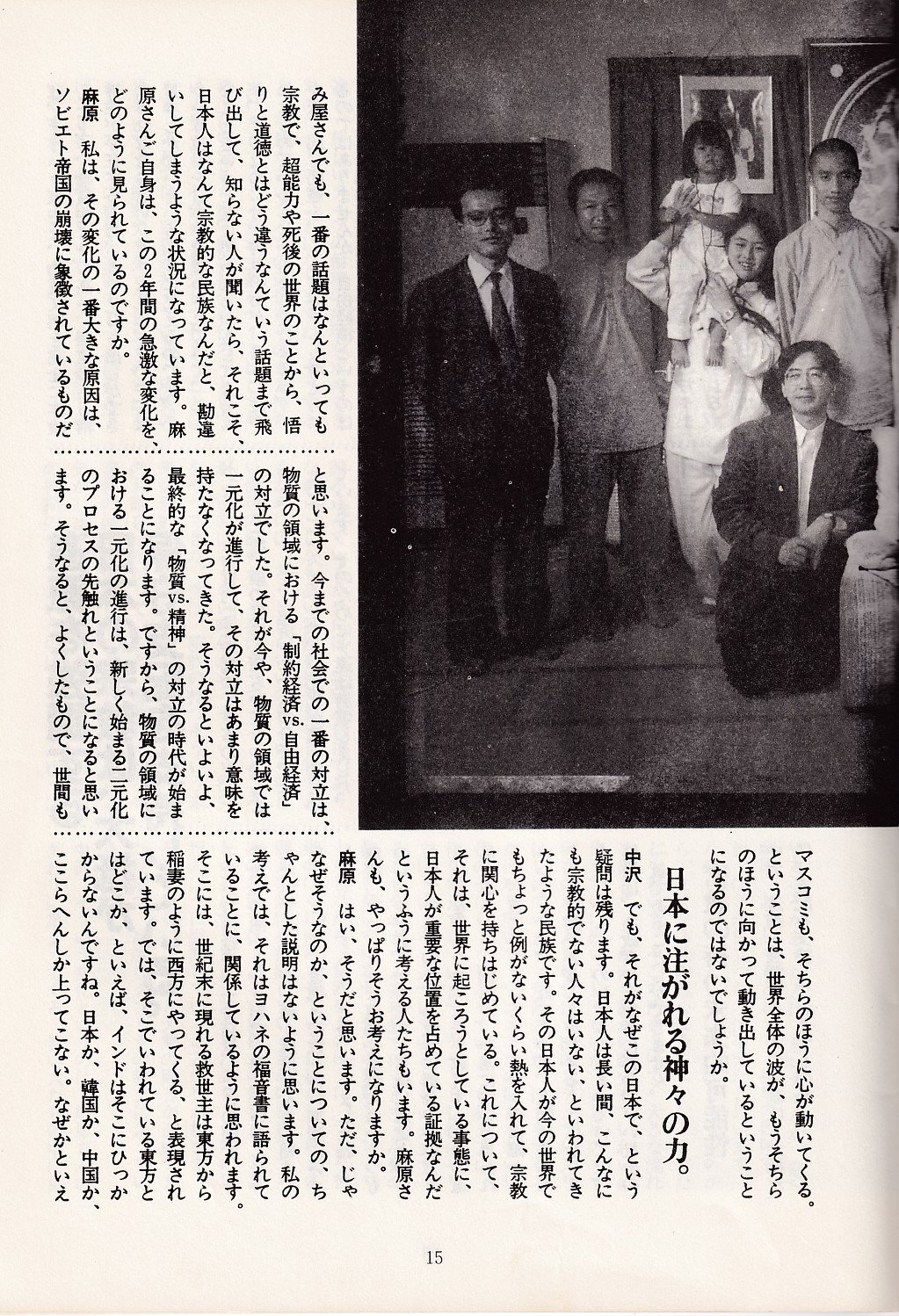 麻原尊師とビートたけしの対談。他に中沢新一・荒俣宏との対談、「生死を超える」を絶賛した吉本隆明の書評など。